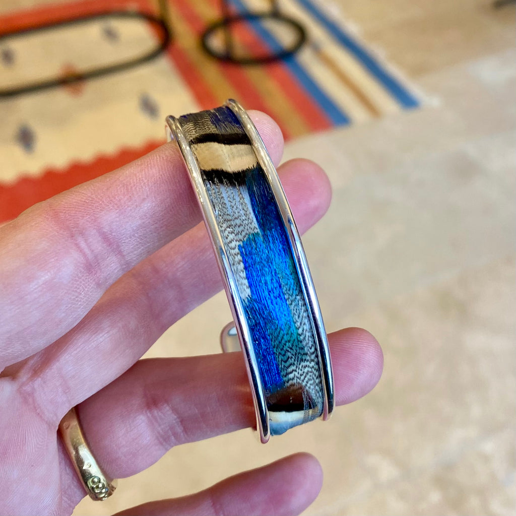 Cette manchette est composée de plumes de paon, perdrix et canard.